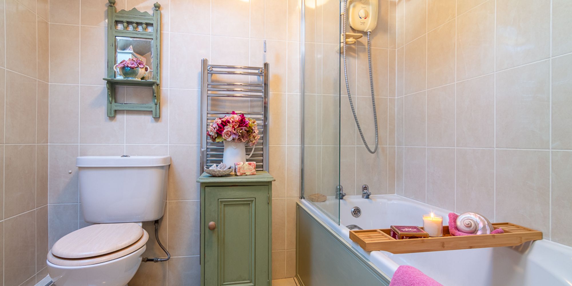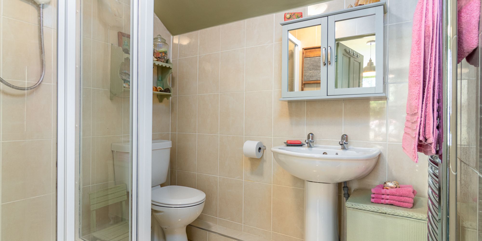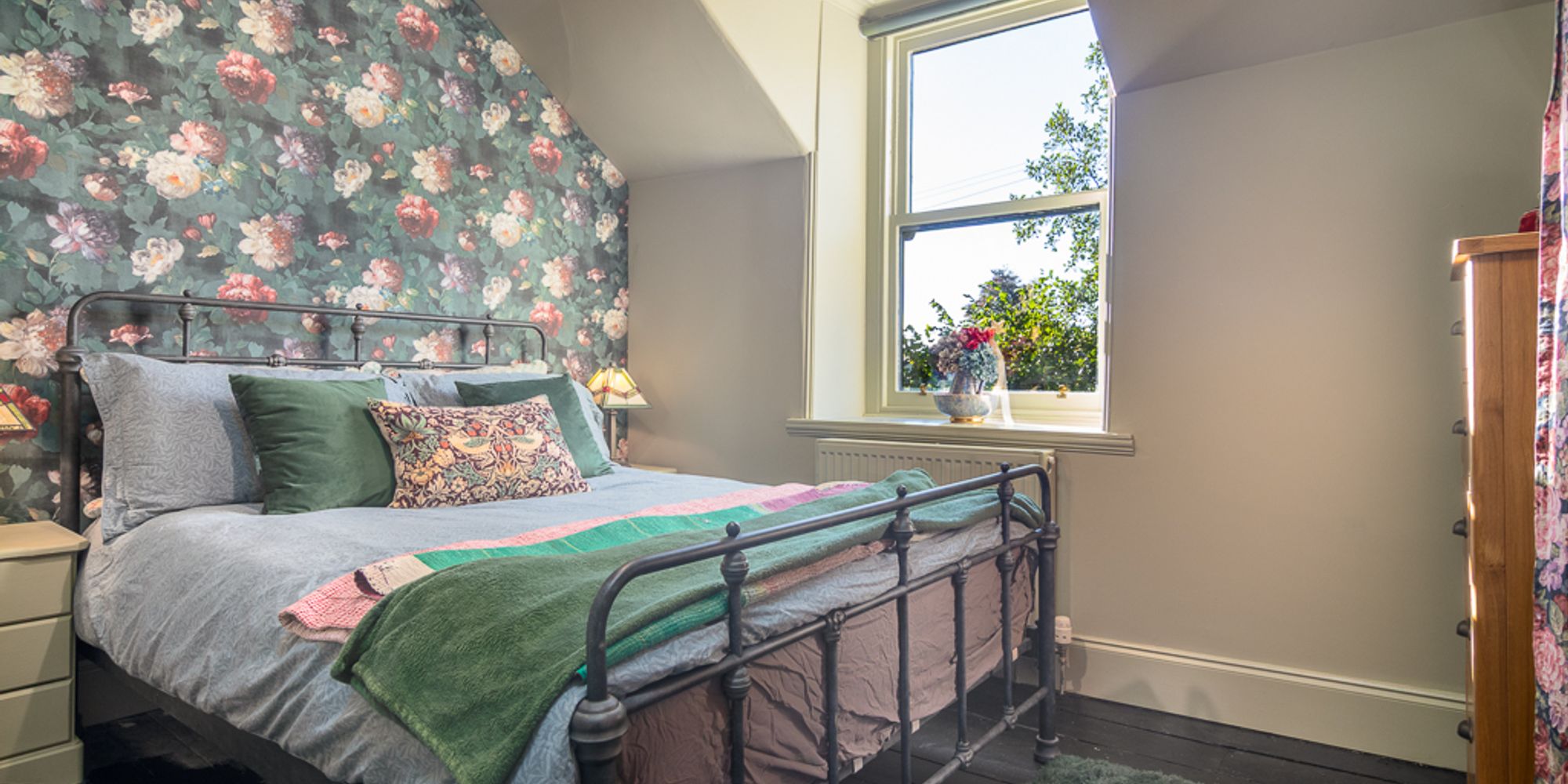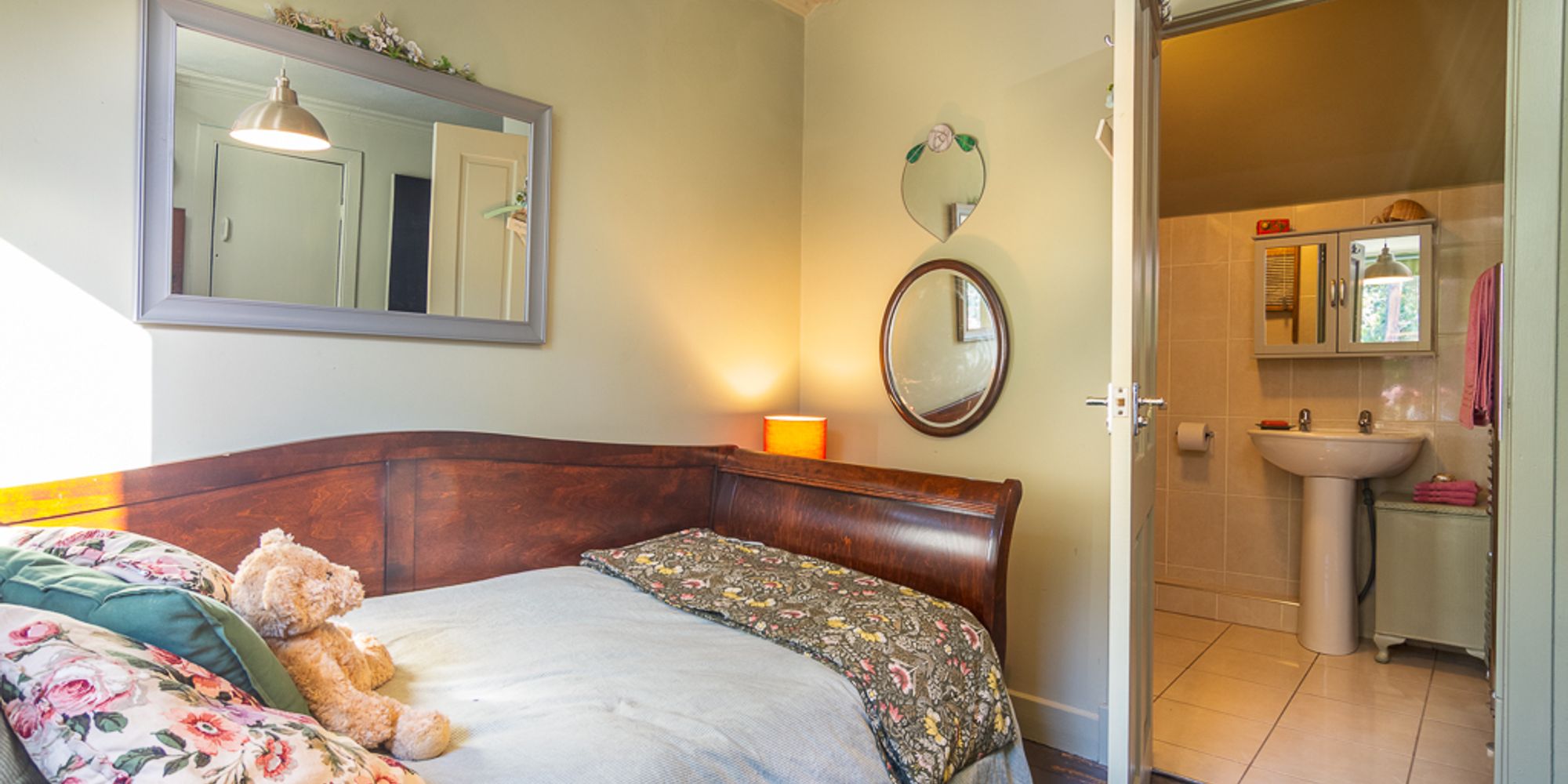 Upstairs, the smaller bedroom boasts a private ensuite shower room, while the family bathroom features a three-piece suite and electric shower. The main bedroom has been thoughtfully adapted, converting a historic bed recess into generous wardrobe space, balancing quirks with practicality.