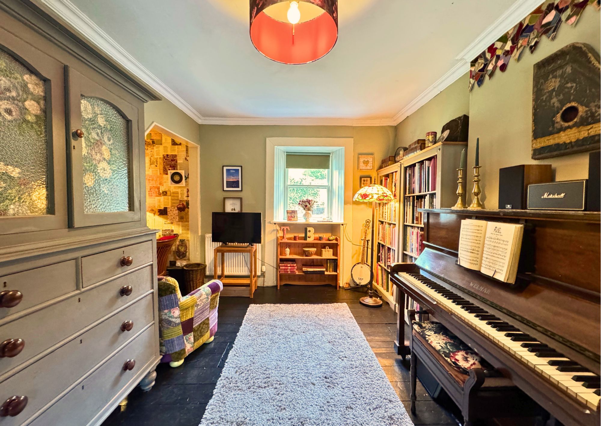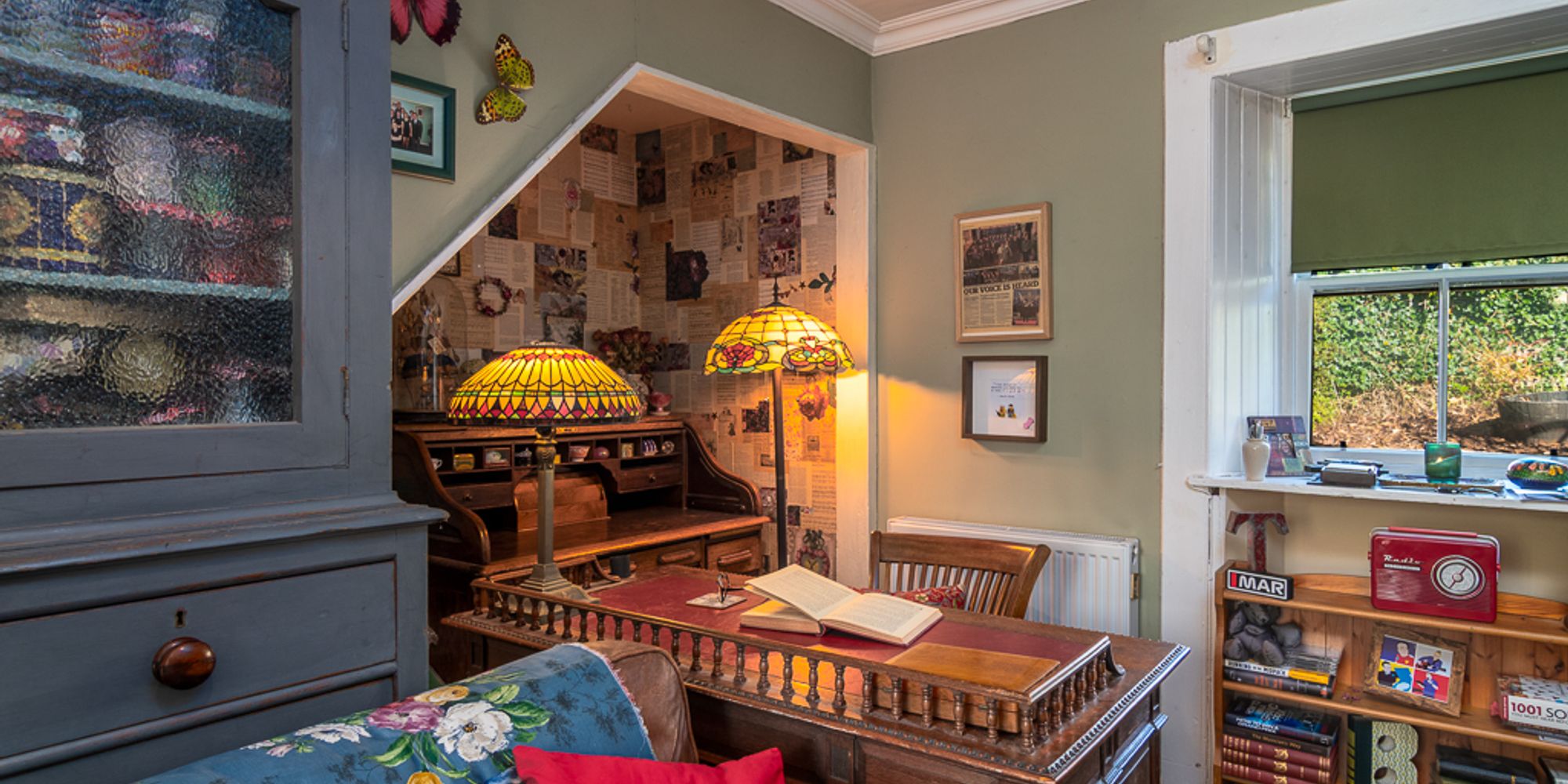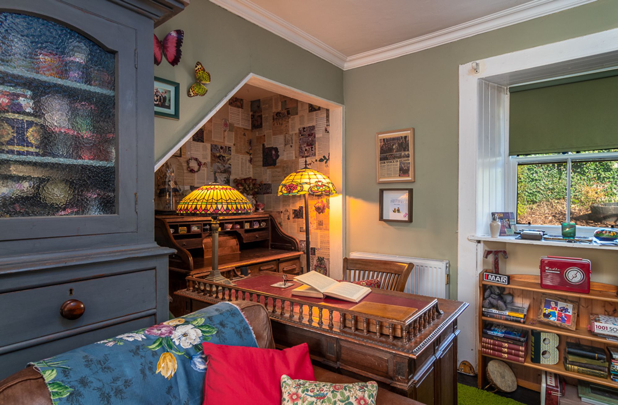 Almeel House is more than a home; it is a sanctuary where whimsy and practicality coexist. Nestled within the picturesque Clachan of Campsie conservation area, the cottage sits amidst a landscape shaped by both nature and history. In the 19th century, local resources fueled thriving industries, from textile printing to the Clachan Bleach Works. While the factories have vanished, the cottage endures, a charming testament to a village where timeless beauty meets its industrious past, each room, corner, and garden path sparks the imagination, offering a life that is as charming and comforting as it is magical.