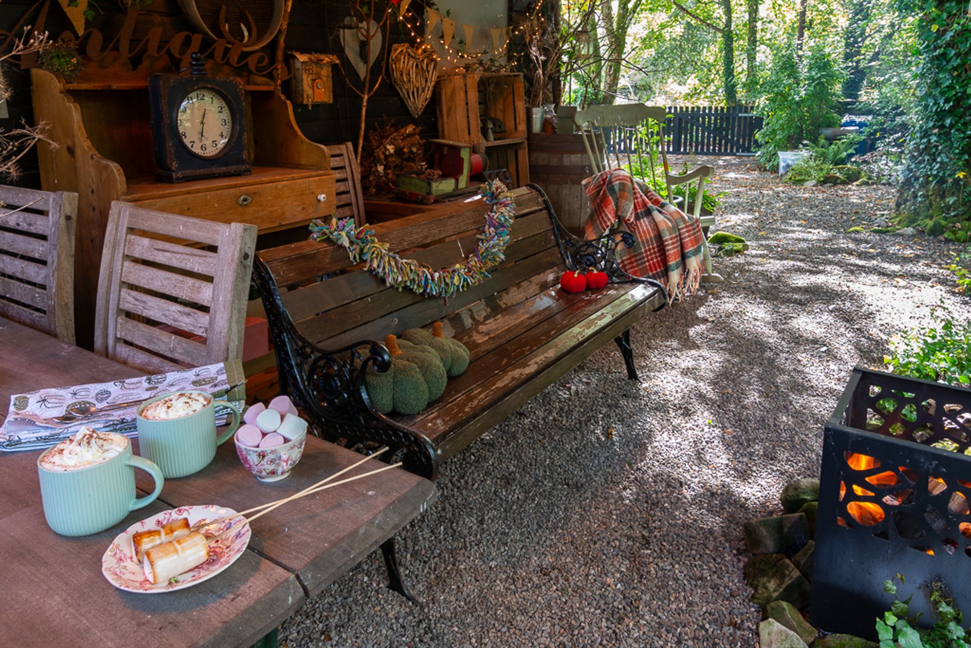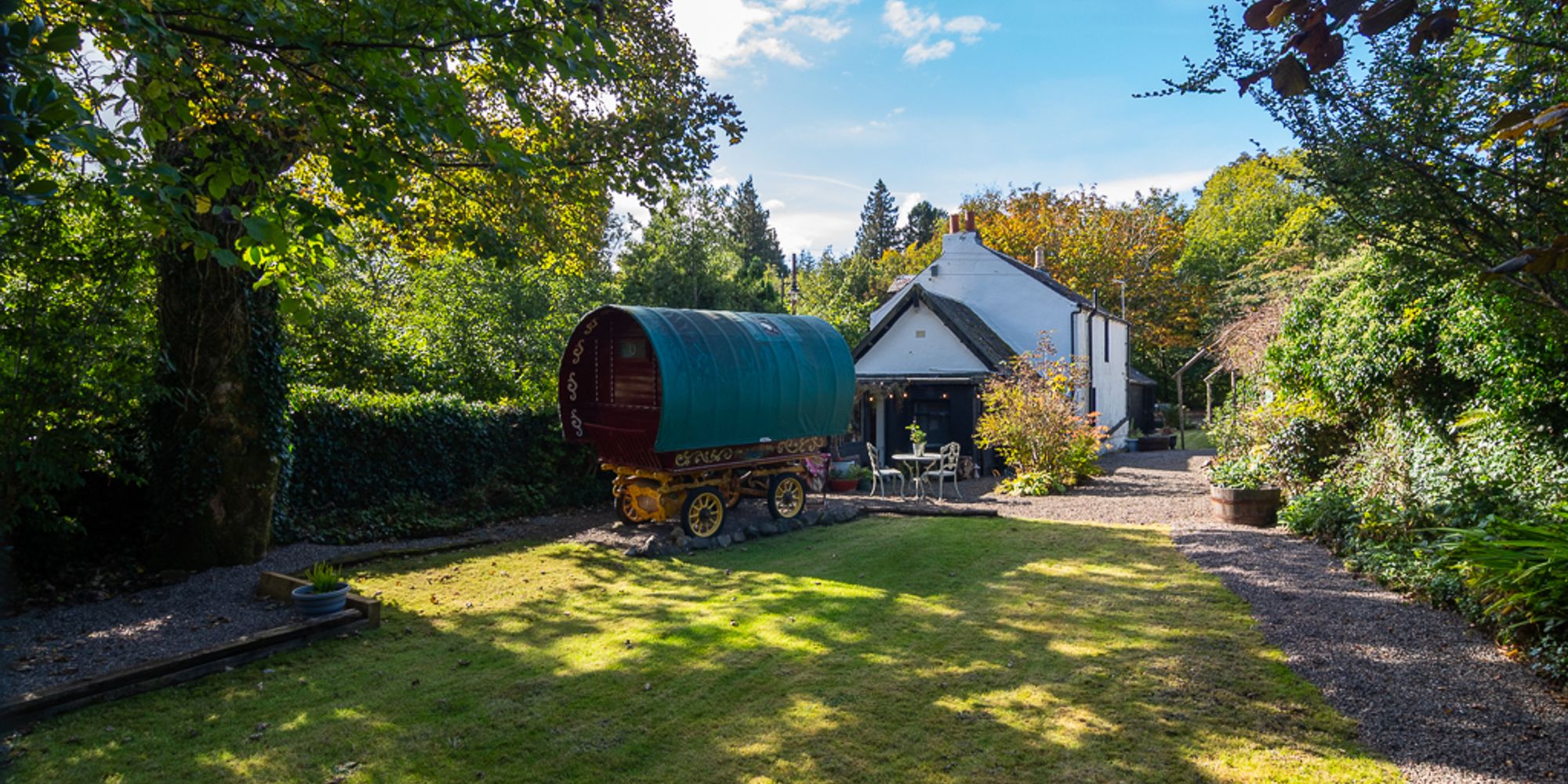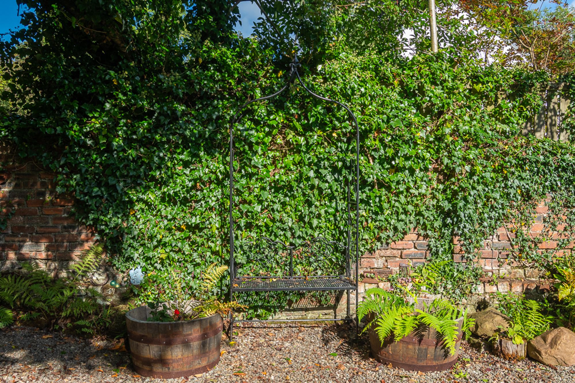 Outside, the magic continues. A generous chipped driveway leads to a timber garage, while the former car port has been transformed into a whimsical outdoor seating area. Fairy lights twinkle above and gentle heaters provide warmth on crisp autumn evenings. Here, family gatherings and quiet reflections are shared alike, with mugs of hot chocolate in hand, the Kirk burn murmuring nearby, and the woodland alive with life.