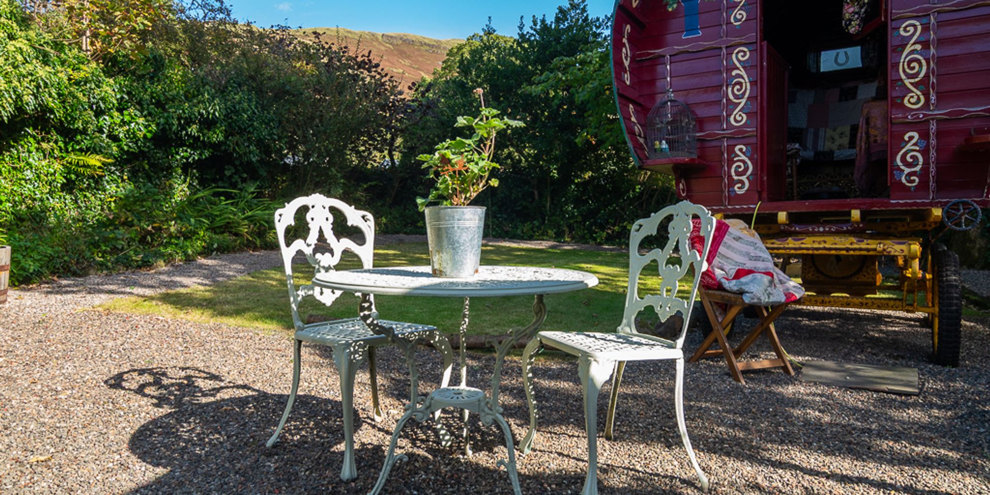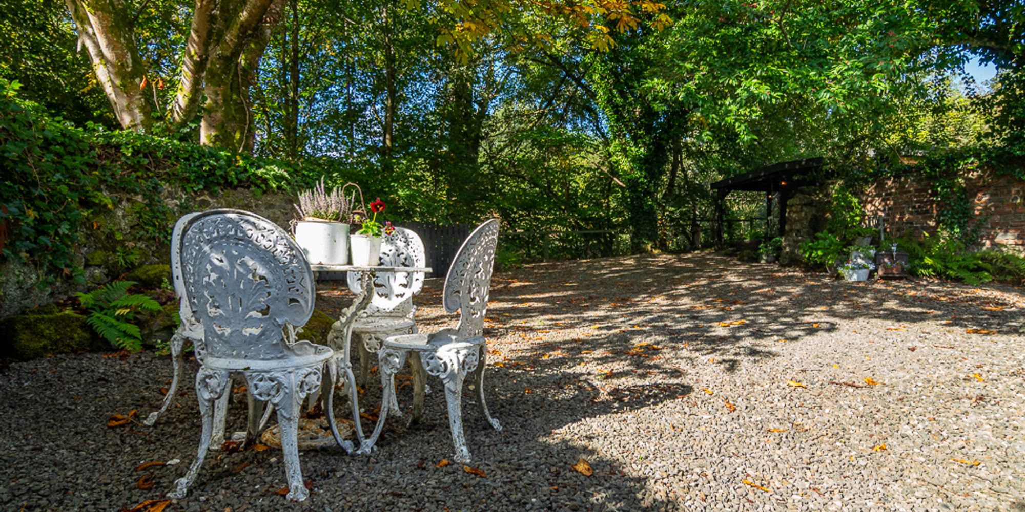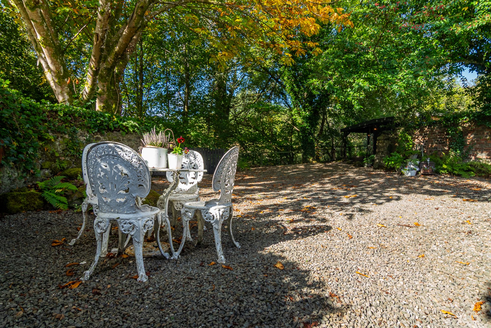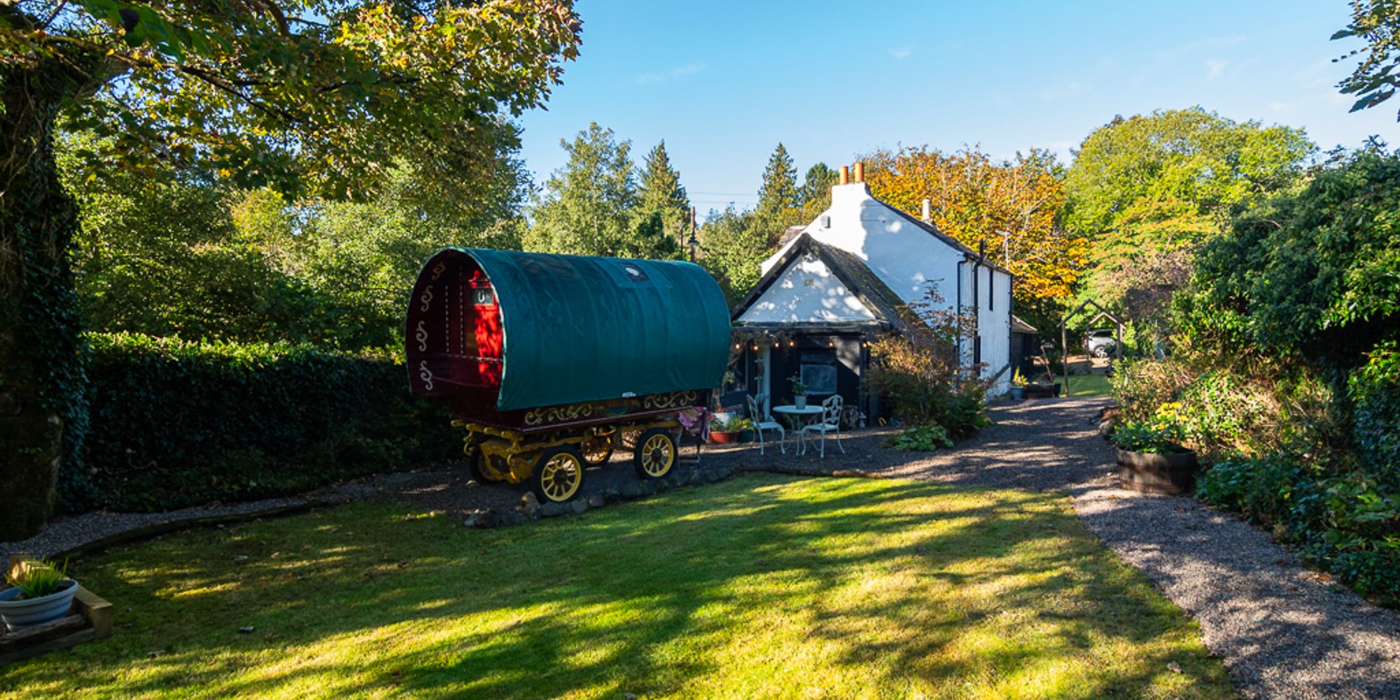 Outside, the magic continues. A generous chipped driveway leads to a timber garage, while the former car port has been transformed into a whimsical outdoor seating area. Fairy lights twinkle above and gentle heaters provide warmth on crisp autumn evenings. Here, family gatherings and quiet reflections are shared alike, with mugs of hot chocolate in hand, the Kirk burn murmuring nearby, and the woodland alive with life.