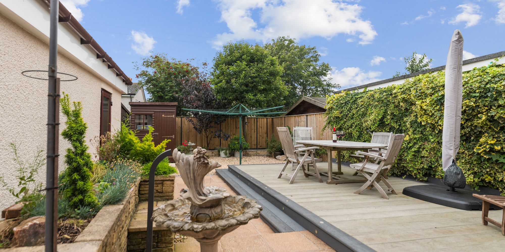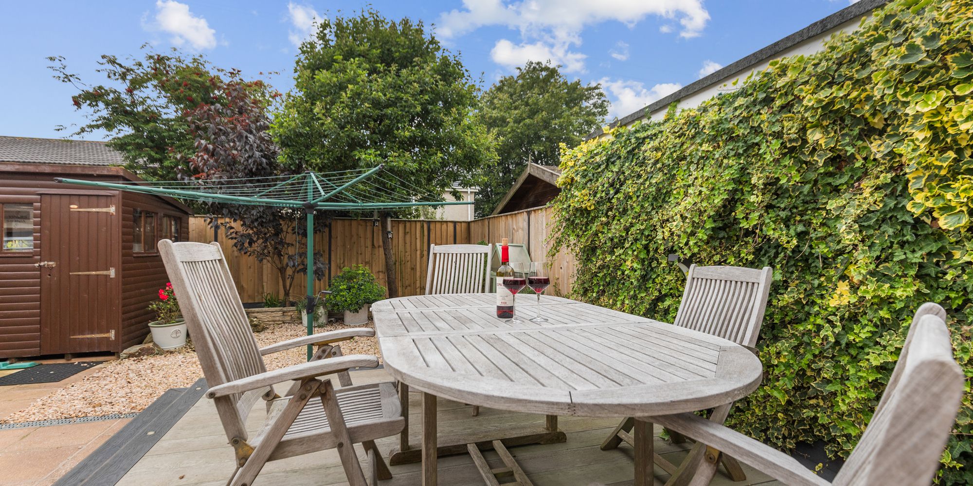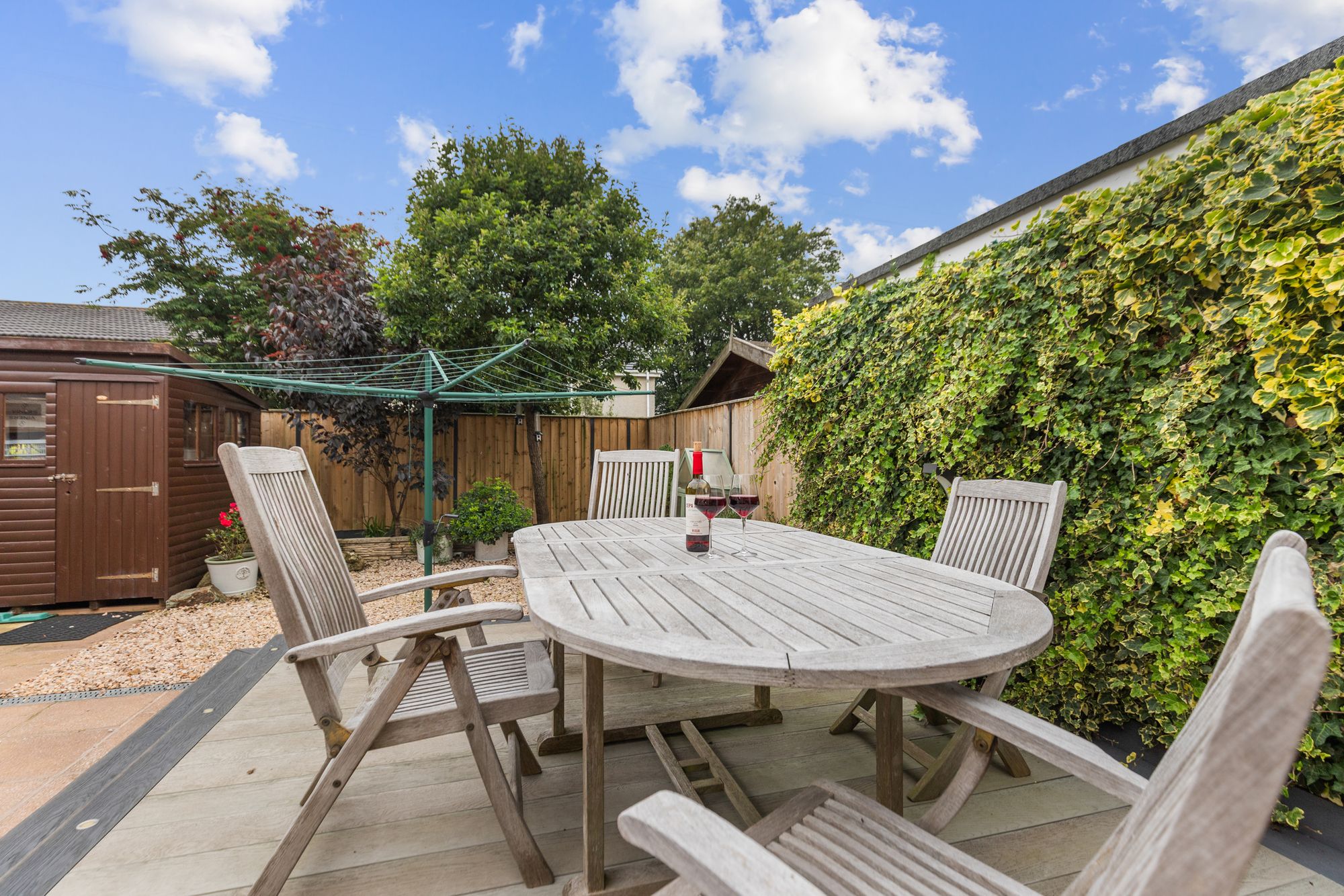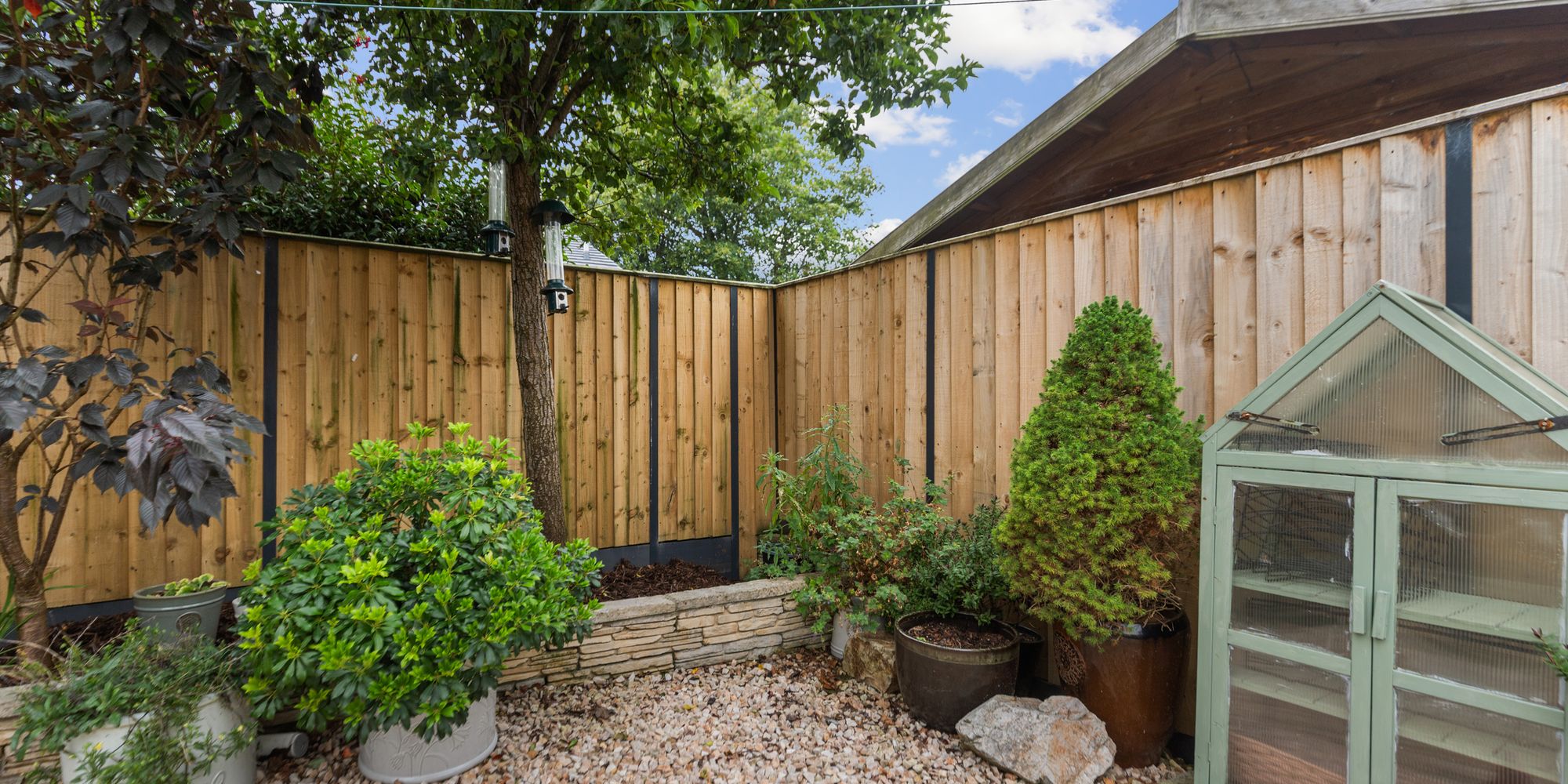 Outdoors, the private garden feels like a sanctuary. With composite decking, a dining area, mature hedges, and full fencing, it is an ideal space for entertaining or enjoying quiet moments in nature. A timber shed adds valuable storage, keeping the garden both practical and serene.