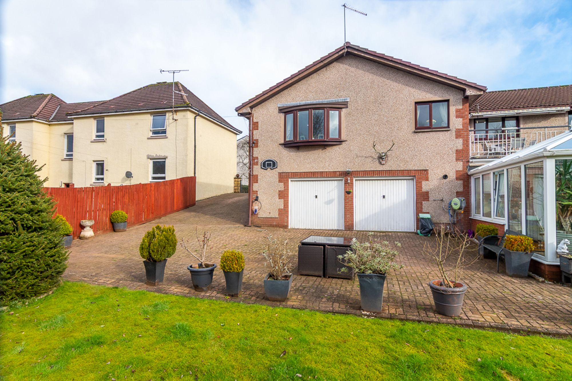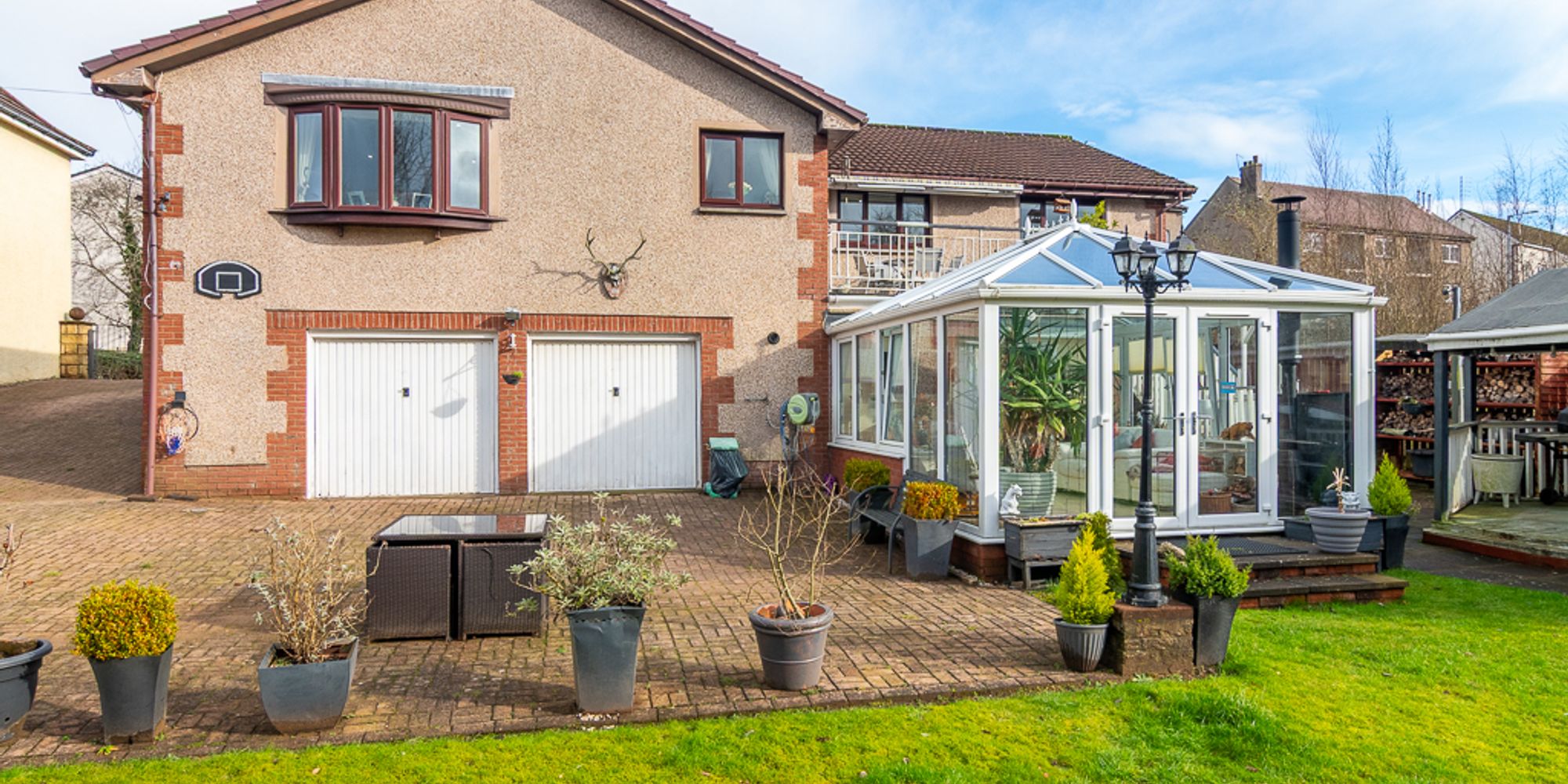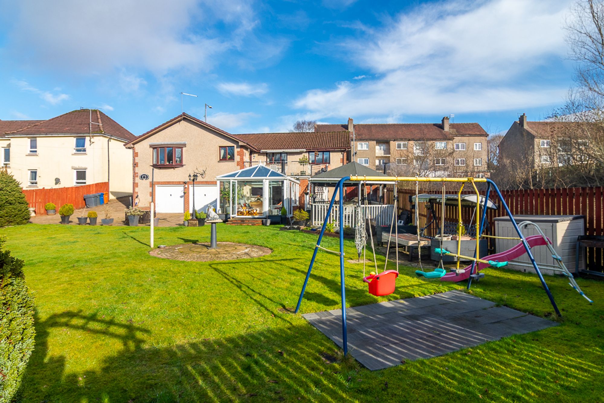 This spacious four-bedroom home in Lennoxtown is ideal for growing families or those with older children who value both shared living spaces and room to spread out. From the street, it appears as a modest bungalow, but this belies the basement and conservatory concealed beneath, offering additional versatile space for modern family life.
