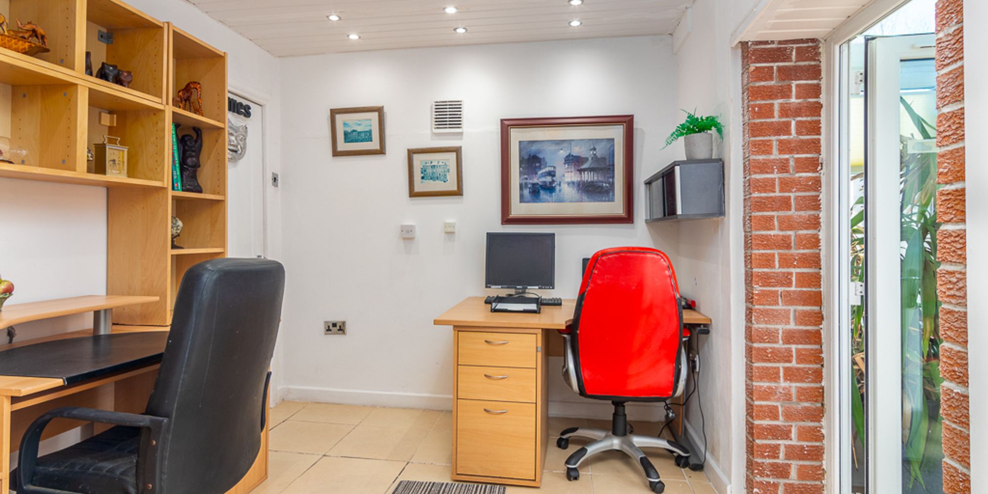 From the games room, the space continues into a bright home office and a generous conservatory, featuring tiled flooring, a log burner, and direct access to the rear garden through French doors. The conservatory provides versatile, year-round living space, whether used as a secondary sitting room, study, or creative area. A separate kitchenette, shower room, and workshop with built-in benches and power points further enhance the flexibility of this level. Wine enthusiasts will appreciate the dedicated wine cellar.