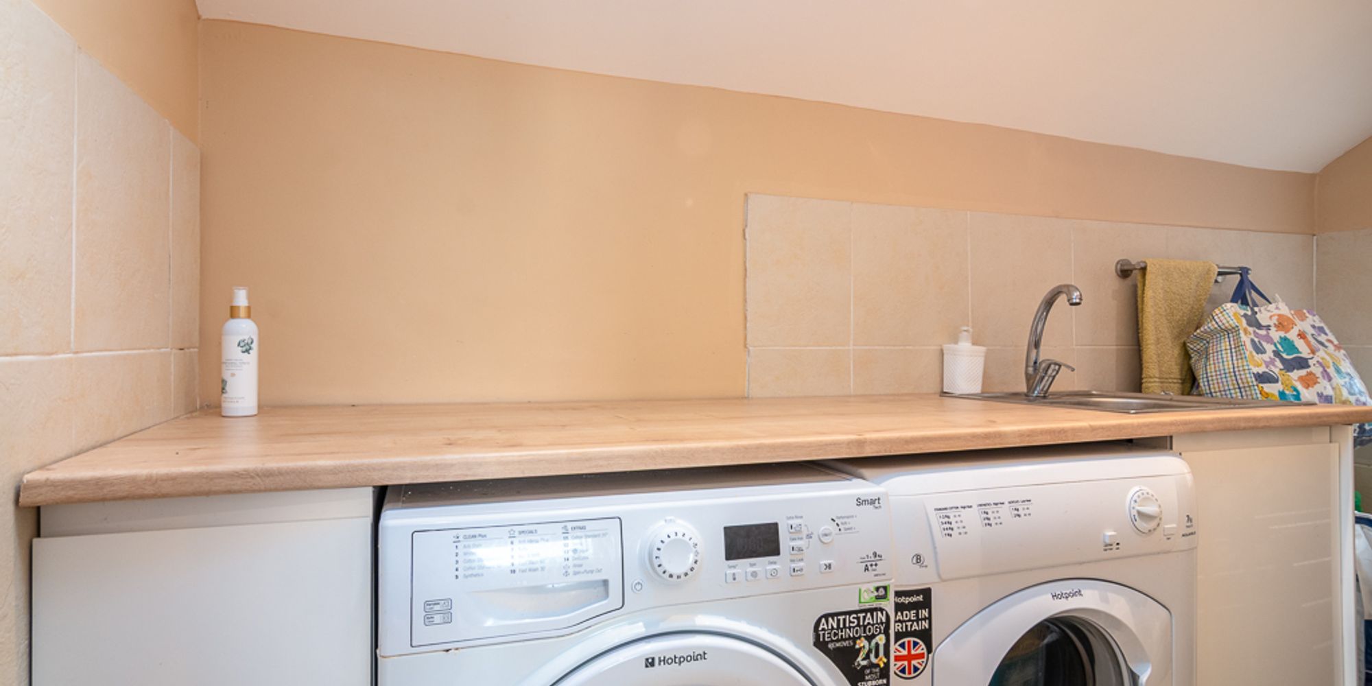 Practicality has also been carefully considered. A newly fitted WC sits alongside a utility room that makes light work of the dreaded laundry, with plumbing for washer and dryer, hanging space for wet clothes, and worktops for folding and organising.